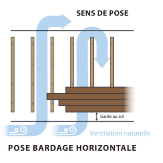 La lame d’air ventilée est obligatoire selon le DTU 41.2, et elle est essentielle pour la durabilité de votre bardage bois.