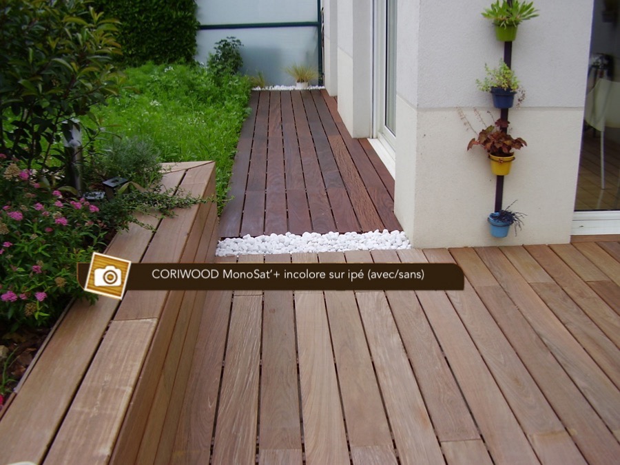 L’application de CORIWOOD TERRASSES sur bois déjà grisaillé assombrit la couleur naturelle du bois. Il peut être nécessaire de passer au préalable un dégrisant de type CORIDEGRIS'PRO.